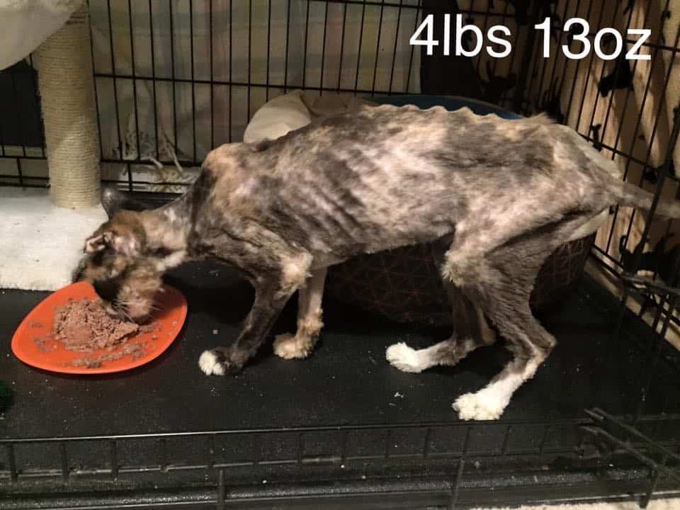 Fortunately, someone spotted the cat and decided to intervene. She was only skin and bones. Nobody expected her to survive but she did. The poor cat weighed just 3 pounds and 15 ounces when she was brought to Saving One Life, a rescue group in Chandler, Arizona.
