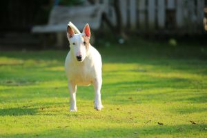 Bull Terriers have short, smooth coat that requires regular grooming to keep them clean and shiny. They also need a regular ear and dental care.