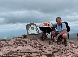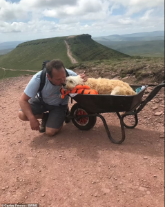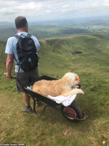 After becoming aware the Labradoodle wasn’t very well, Carlos decided to return to the beacons, so they could share one last journey together – with the aid of a wheelbarrow.