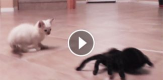 She Crossed Paths With That Scary Spider. What This Little Kitten...