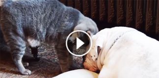 Cat Tries To Wake Up This Dog. Now Wait Till You...