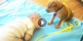 This Pup Is Trying To Keep A Watch On That Baby....