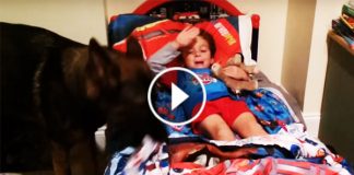 Every Night That Giant German Shepherd Does This For His Sleepy...