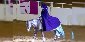 Woman Rides Up On Her Horse Then Removes Her Cape And...