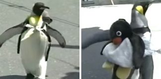 Penguin In Japan, Takes His Backpack And Walks Alone To The...