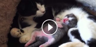 Little Kitten Is All Curled Up With His Mom. But When...