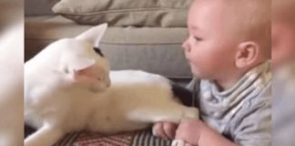 Baby Yanks On Rescued Cat’s Legs – Cat’s Response Has Internet...
