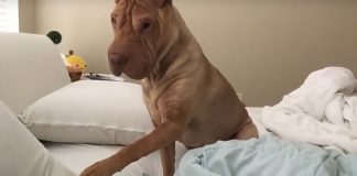 Well-Mannered Shar Pei Wakes Up Owner Gently. Her Polite Way Is...