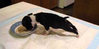 Boston Terrier Puppy Is Eating His Dinner When The Most Adorable...
