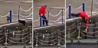 Cat Knocked Into Water After Cat Fight. Hero Springs Into Action...