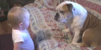 Baby Is Having Serious ‘Talk’ With Family Bulldog – Now Watch...