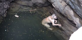 Drowning Dog Desperately Hangs On In The Hope Of Being Saved