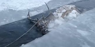 Drowning Stag Cries Out From Frozen Lake — Finally Help Arrives,...