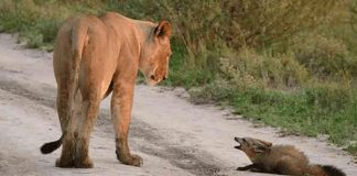 Lioness Finds Injured Baby Fox On The Road – What She...