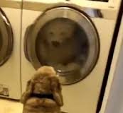 Adorable Dog Gives Moral Support To Favorite Toy Stuck In Washing...