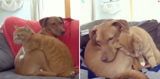 Camera Captures Cat Comforting Anxious Dog While Mom Is At Work