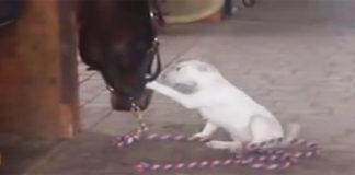 Pit Bull Puppy Ran Towards This Horse, Then They Share An...