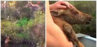 Crying Baby Moose Is Struggling In Lake While Mom Stands Helplessly...