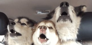 Alaskan Malamutes Singing In Harmony on Their Way to Get Groomed