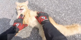 Man Stops Motorcycle When He Spots Cat Laying In The Middle...