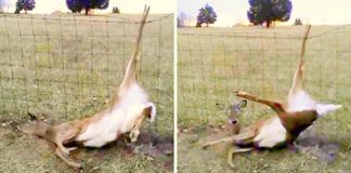Deer’s Foot Was Helplessly Stuck In Barbed Wire Fence, Until Dog...