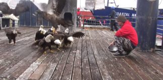 Rare Footage Of Huge Flock Of Bald Eagles Surrounding Fisherman And...