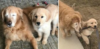 Blind Senior Dog Gets His Own ‘Seeing-eye’ Puppy Who Helps Lead...