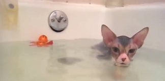 Hairless Cat Has An Adorable Reaction To His First Bath