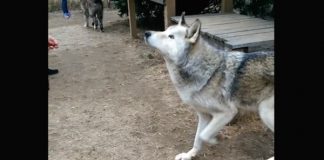Man Approaches Huge Wolf-Dog With Handful Of Food, Gets A Hug