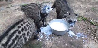 African Civet Cats Hilariously Don’t Know How To Drink Milk