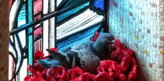 Pigeon Builds Nest Out Of Poppies At The Australian War Memorial