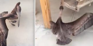 Pelican Who Lost Wing In Hurricane Waits Every Day For Fish...