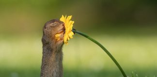 Photographer Catches Ground Squirrel Blissfully Smelling A Flower