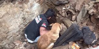 Mother Dog Helps Rescuers Find And Dig For Her Buried Puppies