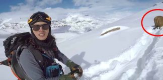 Snowboarders See Large Rock On The Face Of The Mountain –...