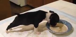 Adorable Little Boston Terrier Puppy Eats His Dinner When The Unexpected...