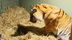 The bear was so eager to get inside that at one point he pulled himself up onto the woman’s porch railing …