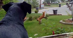 The woman was of course a little scared of the overly eager bear, and eventually got her neighbor, Bob Belfiore, to see if he could come and help her gently scare the bear away.