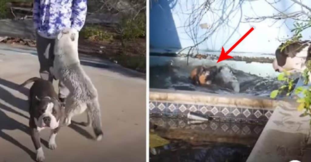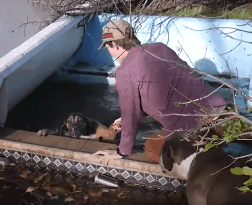 Soon after, the teens realized how one of the dogs’ friends found itself in trouble. The poor dog fell into one of the pools that were full of water because of the heavy rainfall that struck the city the previous day. The dog was desperately trying to get out but didn’t have any strength left.