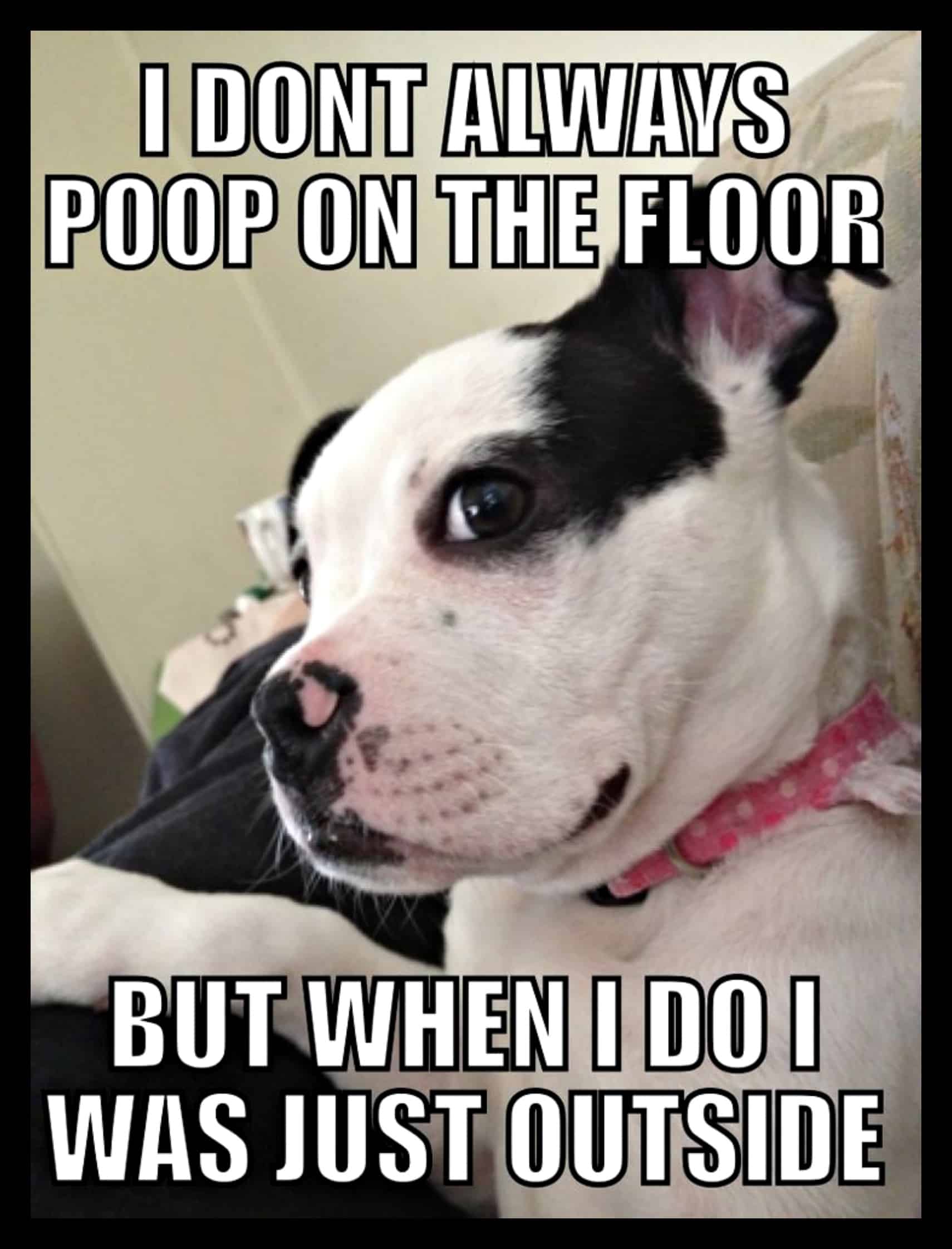 Pet parents and human parents can appreciate this meme! Our “kids” are always getting into trouble and they just love to deny, deny, deny! Even if the evidence is written all over their faces!