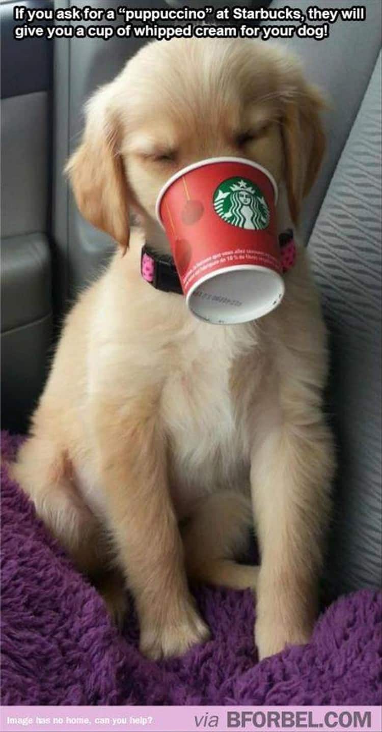 #1 Funny animal memes are almost as cute as this puppy enjoying a Starbucks Puppucchino!