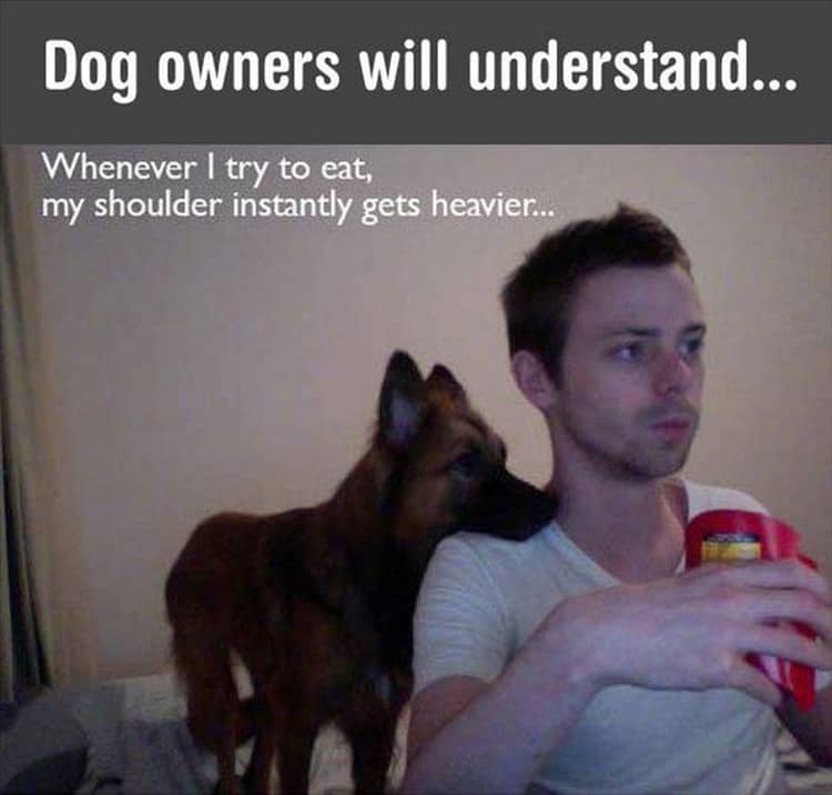 “Dog owners will understand. Whenever I try to eat, my shoulder instantly gets heavier…”