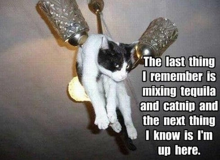 “The last thing I remember is mixing tequila and catnip and the next thing I know is I’m up here.”