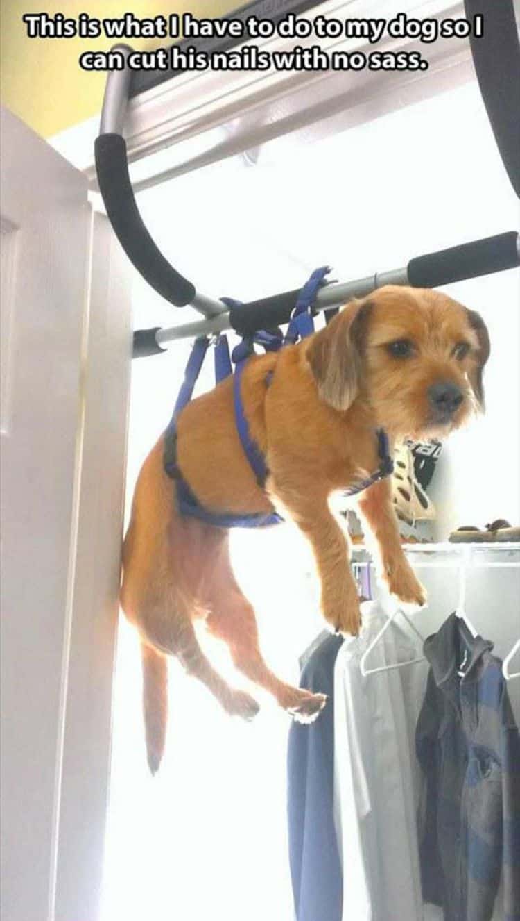“This is what I have to do to my dog so I can cut his nails with no sass.”