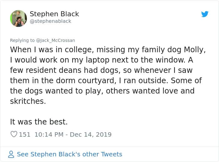 The foursome contacted the dog’s owner, asking whether they could spend some time with her because their landlord doesn’t allow them to have any pets.