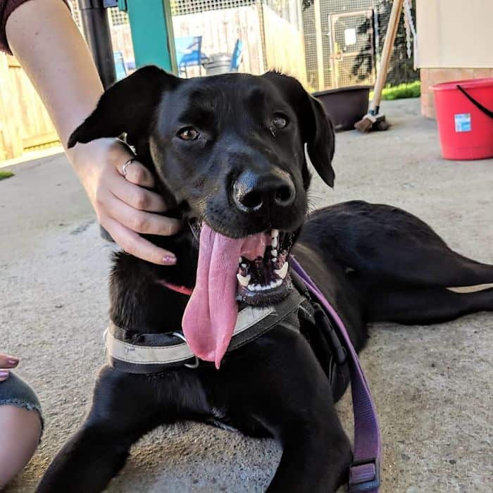We wanted to learn all that we could about Stevie, and her owners happily obliged to answer all of our questions. “She’s a 2.5-year-old sheprador. Originally from Cyprus. She was hit by a car, had surgery and was then flown to a shelter in the UK where she was swiftly rescued by me and Sarah. She loves playing tug, chasing birds and licking feet,” Chris revealed.