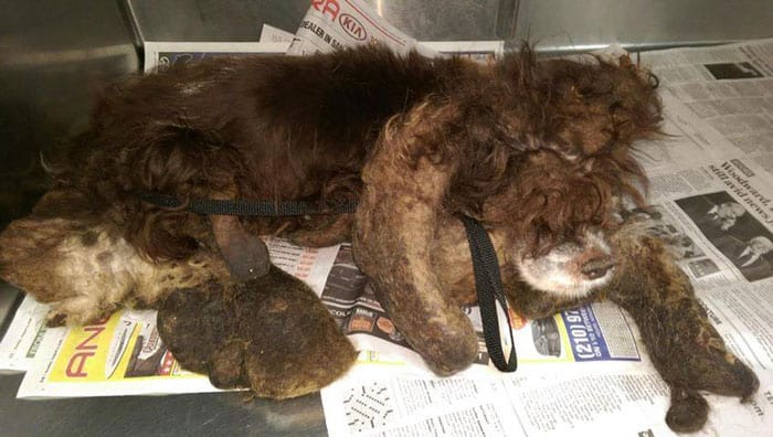 When San Antonio, Texas police officers found Hamish the Cocker Spaniel he was unidentifiable. The crew was first alerted of the spaniel by a call that there was an animal struggling in the middle of the road and were shocked when they came across a dirty, wooly, abandoned creature. Hamish was immediately sent to the San Antonio Animal Care Services to receive medical care.