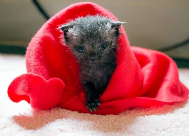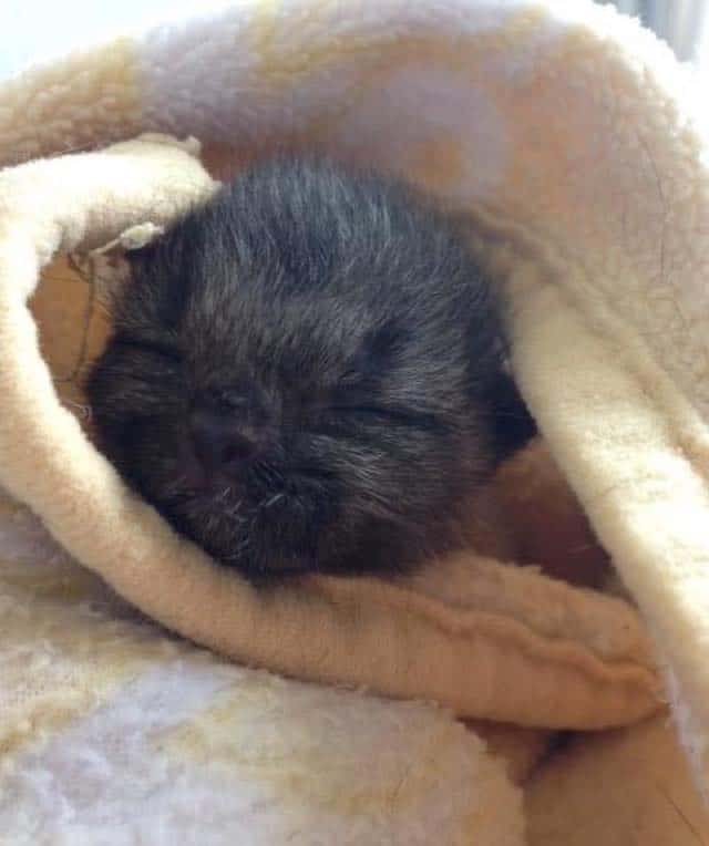 After 12 days, the kitty still hadn’t opened his eyes and remained very small.