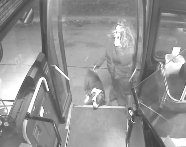 The dogs happily boarded the bus and seemed to be in good spirits, likely grateful to be off the streets and onto a warm vehicle. In the meantime, their family was out looking for them. The duo escaped from their yard a few hours earlier and Jamie retrieved them close to three miles from their home.