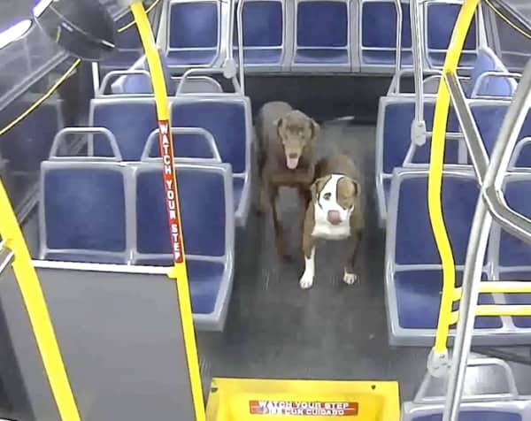 A Pit Bull and a Doberman Pinscher were found roaming the streets of Milwaukee, Wisconsin, while their frantic family wondered where they were. The duo was spotted by bus driver, Jamie Grabowski.